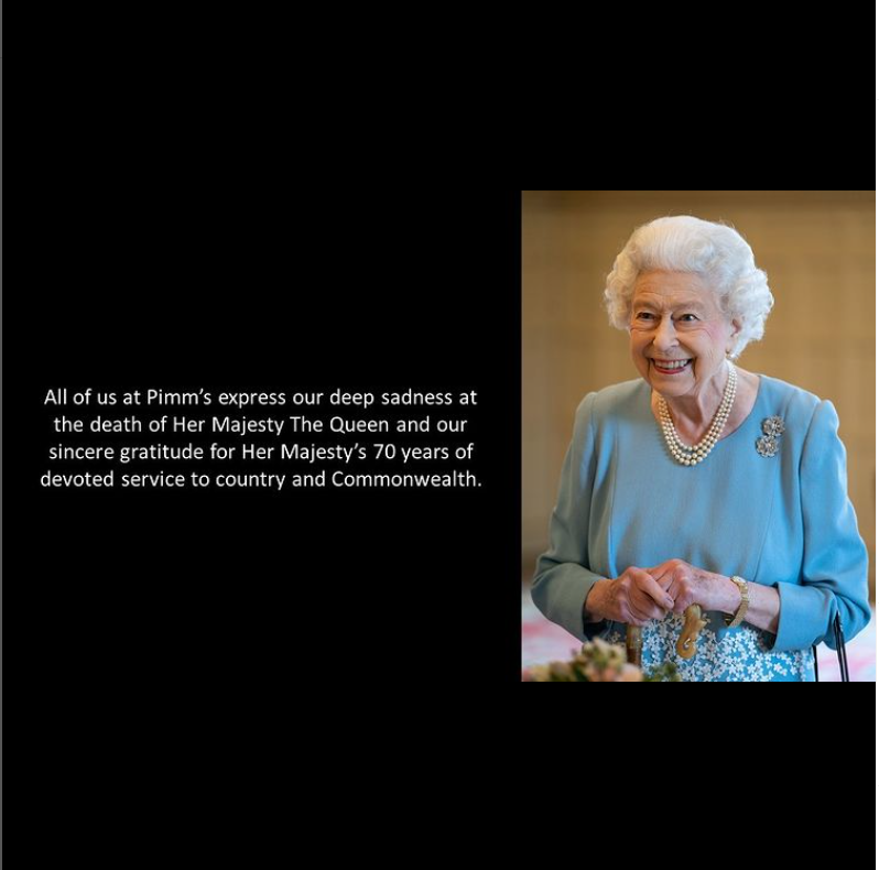 “All of us at Pimm’s 25% alcohol express our deep sadness” #diageo